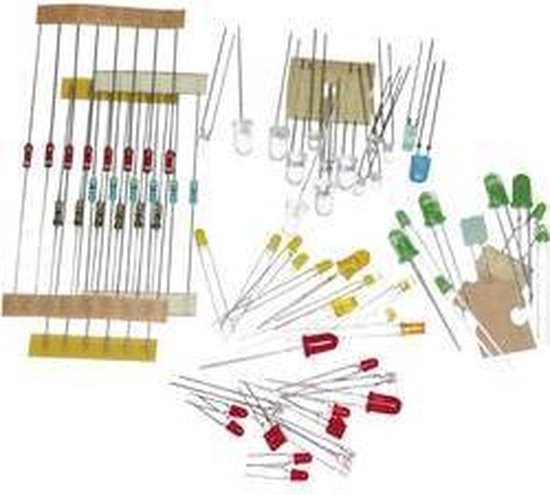 L'installation de ± 50 diodes électroluminescentes différentes et de 20 résistances en série avec différentes valeurs est complétée par une brochure avec 14 schémas de connexion illustrés. Idéal pour une introduction au monde fantastique de la technologie LED ou pour les établissements d'enseignement pour la formation et le perfectionnement dans le domaine de l'optoélectronique.