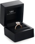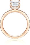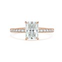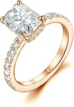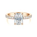 Astra - Ring en or rose 14 carats avec moissanite radieuse et pierres latérales pavées et halo caché - 2,7 carats.