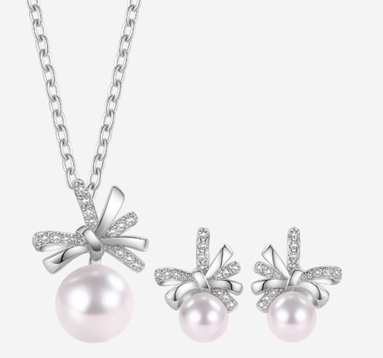 ASTRADAVI S925 Argent Sterling - Coffret Cadeau Bijoux - Magnifique collier pendentif en forme de nœud orné d'une perle et de zircon - avec Boucles d'oreilles Assorties