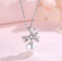 - Magnifique collier pendentif en forme de nœud orné d'une perle et de zircon. Longueur de la chaîne 40 cm + rallonge de 5 cm (16" + 2").