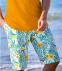 Profitez pleinement de la mer avec ce short de bain en microfibre (env. 110 g/m²) aux motifs exotiques. Pratique : il dispose de 2 poches latérales, 1 poche cargo avec velcro et 1 petite poche intérieure en filet avec fermeture velcro. Un modèle très confortable agrémenté d'une ceinture élastique réglable par un cordon de serrage et équipé d'un slip intérieur en mesh. 100% polyester. Longueur du tube intérieur environ 30 cm et largeur du tuyau environ. 29 cm en taille L. Lavable en machine à 30°C. Séchage rapide. Aucun repassage requis. Couleur : turquoise