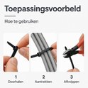 Ces colliers de serrage sont une solution pratique pour les fixations semi-permanentes. Ils sont fabriqués en nylon résistant : antirouille, sans entretien et résistant à l'usure. Les attaches sont légères. Que vous les utilisiez occasionnellement ou régulièrement, vous pouvez toujours compter sur une fixation sûre et solide.