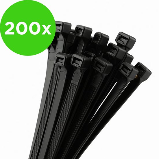Attache-câbles Eleganca - 200 pièces - Serre-câbles - Organisateur de câbles - Résistant aux UV - Tyraps - Charge maximale 55 kg - 7,6 x 450 mm - Zwart