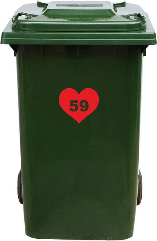 Autocollant Kliko / Autocollant poubelle - Coeur - Numéro 59 - 18,5x16,5 - Rouge