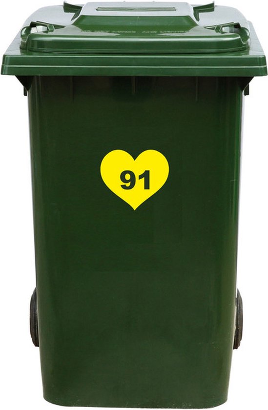 Autocollant Kliko / Autocollant poubelle - Coeur - Numéro 91 - 18,5x16,5 - Jaune