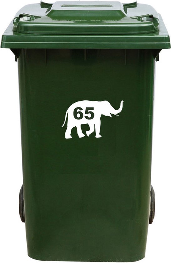 Autocollant Kliko / Autocollant poubelle - Éléphant - Numéro 65 - 14x23 - Wit