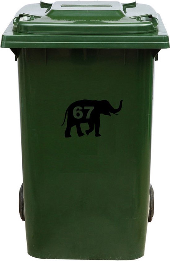 Autocollant Kliko / Autocollant poubelle - Éléphant - Numéro 67 - 14x23 - Zwart