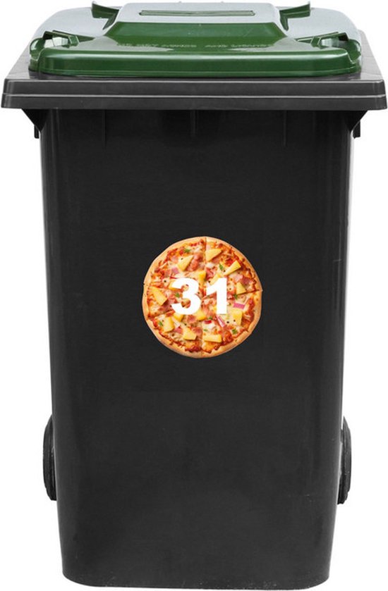 Autocollant Kliko / Autocollant Poubelle - Pizza Hawai - 16,5x16,5 cm - NUMÉRO DE MAISON 31