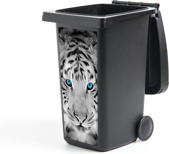 Autocollant poubelle - Animaux - Tigre - Yeux - Blauw - Zwart et blanc - Afvalcontainer