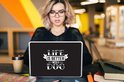 Sur un fond noir se trouve la citation La Life est meilleure avec un chien en lettres noires. .