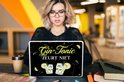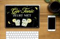 Le dicton «Gin Tonic ne pleurniche pas » entouré de verres à gin tonic vintage.