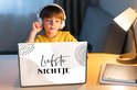 La taille de l'autocollant pour ordinateur portable est de 32,5 x 23,5 cm. L'autocollant convient aux ordinateurs portables de 14 pouces. L'autocollant ne convient pas tout à fait? Ensuite, vous pouvez facilement le recadrer vous-même.