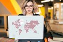 Autocollants pour ordinateur portable - Wereldkaart - Rose - Lettres - Housse pour ordinateur portable