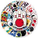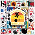 - Set d' Autocollants de bowling uniques avec des épingles, des boules de bowling, des quilleurs et des textes.