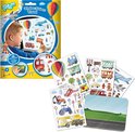 Autocollants de fenêtre Totum trafic. Avec ce joli ensemble d'autocollants de fenêtre réutilisables, vous pouvez aller n'importe où. Prenez la voiture, le train ou l'avion. Vous pouvez coller ces autocollants sur une vitre ou sur l'arrière-plan fourni. Vous pouvez donc profiter de jouer avec cet ensemble à la maison, mais aussi lors d'une balade en voiture.