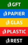 Autocollants pour conteneurs - 5 pièces - Dimensions 20x5cm - Papier - Plastique - Glas - GFT - Reste - Autocollants déchets - Autocollants Kliko - un autocollant pour chaque type de déchet