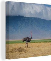 Autruche au milieu de la savanne du cratère du Ngorongoro en Tanzanie Toile 140x90 cm - Tirage photo sur toile (Décoration murale salon / chambre)