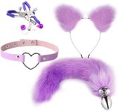 Cet ensemble noir est parfait pour un certain nombre de jeux anaux d'animaux. Il se compose d'un plug anal avec queue de chat et d'un serre-tête avec oreilles de chat (rose à l'intérieur)