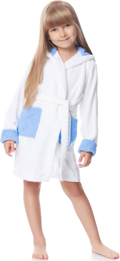 Kinder Bademantel uit Frottee; Warm, zacht en zeer comfortabel; Uitstekende kwaliteit Twee zakken, grote capuchon en riem met lussen; Met haakje aan de nek om op te hangen Zeer hoogwaardige, dikke en zachte stof met lange pool; Absorbeert vocht zeer goed 100% natuurlijke, hoogwaardige en ademende katoen Ideaal voor elk seizoen: buiten, voor sport; Voor dagelijks gebruik en thuis Luxueuze badjas van badstof voor kinderen, die het lichaam in een cocon van ongekende welbehagen hult. Het dikke, warme materiaal is gemaakt van 100% natuurlijke katoen. Het laat de huid ademen en absorbeert vocht uitstekend. Een klassieke en tijdloze stijl maakt de badjas altijd modern. De capuchon en de riem houden uw kind gegarandeerd warm. Grote keuze aan kleuren beschikbaar. Van subtiel tot stralend, zodat uw kind zeker iets passends vindt. Wassen op 40 graden, niet bleken, maximale strijktemperatuur 110 graden. De kleuren kunnen iets afwijken van de kleuren die op het beeldscherm worden weergegeven, afhankelijk van de instellingen van uw monitor.
