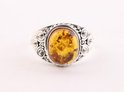 Bague artisanale en argent avec ambre - taille 17