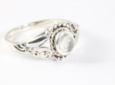 Ce qui est fourni si vous commandez ce produit. - Bague en argent faite à la main et finement travaillée avec une belle pierre de lune arc-en-ciel colorée taillée en cabochon. La teneur en argent est de 925.