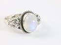 Bague en argent faite à la main et finement travaillée avec une belle pierre de lune arc-en-ciel colorée taillée en cabochon. La teneur en argent est de 925. La bague est disponible en tour de doigt 17.