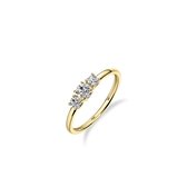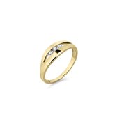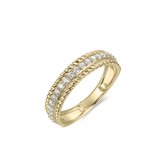 Les zircons blancs taillés en brillant sont joliment et finement sertis sur le demi-tour de la bague. Cela crée un effet intrigant. La bague en or jaune 14 carats a une bande de 2,2 mm.