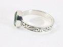 Bague en argent fin faite à la main avec un anneau magnifiquement gravé et incrusté d'une belle pierre d'améthyste verte à facettes. La teneur en argent est de 925. La bague est disponible en taille de bague 16,5.
