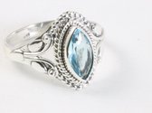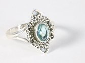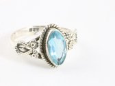 Bague en argent finement travaillée avec topaze bleue - taille 18