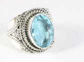 Bague en argent finement travaillée avec topaze bleue - taille 18