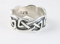 Bague en argent large et lourde faite à la main avec des nœuds celtiques magnifiquement gravés sur un beau fond noir oxydé. Le nœud celtique est le symbole de la vie continue. La teneur en argent est de 925. La bague est disponible en tour de doigt 22.