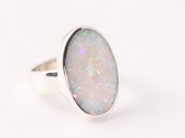 Bague en argent fin et brillante faite à la main, magnifiquement incrustée d'opale welo colorée. La teneur en argent est de 925. La bague est disponible en taille de bague 16.