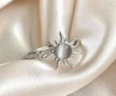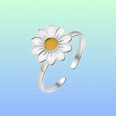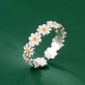Cette bague élégante se compose d'une rangée de marguerites. L'anneau est robuste et réglable, mais ne convient pas aux doigts très fins.