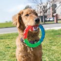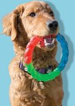 - Un anneau robuste mais légèrement flexible dans des couleurs amusantes pour aller chercher et s'ébattre avec