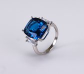 Bague ovale en argent brillant avec topaze bleue - taille 16