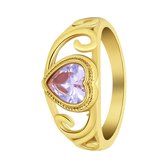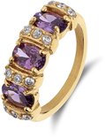 Bague vintage Lucardi Ladies avec zircon violet - Taille 47 - 15mm - Ring - Cadeau - Acier plaqué or - Couleur or