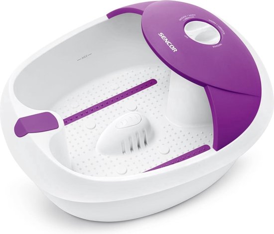 Bain de pieds SENCOR SFM 3721VT avec massage des pieds (90 watts, massage par vibrations, fonction de réchauffement par bulles, spa pour les pieds) violet