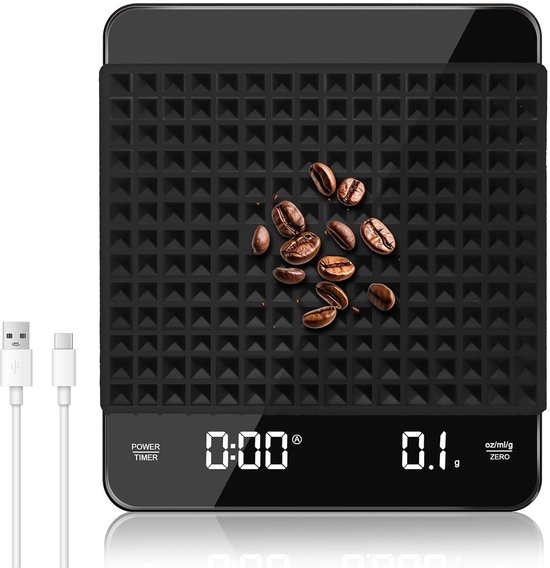 Balance à Café - Avec minuteur - Balance de cuisine numérique - Balance de précision - Barista - Balance de précision 0- Numérique et rechargeable par USB - 3 kg