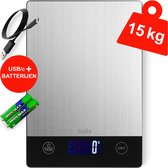 Safio W-15 - Balance de cuisine Zwart Digital - 1gr à 15kg - Balance de cuisine électrique - Balance de précision - Rechargeable USBC - Avec ou sans piles