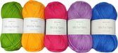 Ces faisceaux de fils ont été spécialement confectionnés pour que vous puissiez démarrer votre projet de crochet ou de tricot de manière encore plus rentable ! Ce fil acrylique en coton doux et soyeux est légèrement torsadé, ce qui rend chaque projet de tricot ou de crochet incroyablement doux et aéré. Le coton de ce fil donne au fil une bonne structure et les points sont bien proportionnés, mais le fil est tordu plus lâche que le fil 100 % coton standard pour préserver le volume de ce fil. L'acrylique contribue à la douceur et au lissé. Le fil a également une belle brillance et est disponible en 17 belles couleurs. Cette combinaison de coton et d'acrylique est idéale pour crocheter ou tricoter des couvertures, des couvre-lits, des vêtements (pour bébés), des peluches et bien d'autres projets amusants !