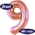 Ballon Aluminium Chiffre 9 - Or Rose - 70cm - Incl. Paille Gonflable - Décoration Anniversaire