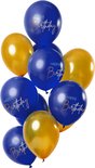 Ballons - Happy anniversaire - Luxe - Blauw, or - 30cm - 12pcs