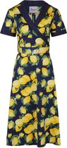 Robe évasée avec patte de boutonnage, col, ceinture sur le devant et imprimé cerises.