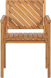 4 chaises de jardin en bois avec accoudoirs. Si vous recherchez des chaises qui s'intègrent sans effort dans votre jardin ou votre terrasse, alors ces chaises sont parfaites. Avec leur style traditionnel, ces chaises respirent la durabilité et le charme du bois d'acacia, idéal pour tout décor extérieur. Leur conception ergonomique permet de se détendre lors de réunions ou de moments calmes en plein air. Détails : Type de produit : Chaise de jardin Style : Traditionnel Couleur : couleur bois clair Type de matériau : Bois Matériau principal : Bois d'acacia Matériau des pieds : Bois Matériau du siège : Bois Accoudoir : Oui Finition : Huilé Pliable : Non Empilable : Non Dimensions : Hauteur des accoudoirs : 64 cm Profondeur : 40 cm Hauteur d'assise : 39 cm Largeur : 55 cm Hauteur : 82cm Surface d'assise : 45x48 cm Poids: 28 kg Capacité de charge : 160 kg L'offre comprend : 4 x chaise Caractéristiques principales : Accoudoirs aux formes Perfect , Les grains et nœuds naturels du bois rendent chaque pièce unique, Design intemporel, Finition Solide , Matériau facile à entretenir et durable Informations d'assemblage : assemblage complet requis. 60-90 minutes. Résistance du texte : Légèrement déperlant, vous pouvez facilement les utiliser à l'extérieur et les garder à l'extérieur malgré la pluie et l'humidité. S'il n'est pas possible de le mettre à l'intérieur lorsqu'il n'est pas utilisé, nous vous recommandons d'utiliser une housse. Une exposition prolongée des meubles et des accessoires à l'humidité peut causer des dommages. Résistance: Résistant aux UV Conseils d'entretien: bois d'acacia : 1.Nettoyez avec un détergent doux et un chiffon doux en respectant le grain du bois. Droog immédiatement après le nettoyage 2. Les meubles huilés devront être réhuilés avant utilisation et après la saison avant stockage, en particulier dans les climats humides 3.Utilisez une housse de protection hors saison et sous la pluie ou, si possible, placez le meuble dans un endroit frais et sec.