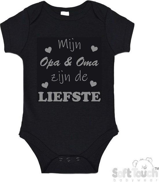 Barboteuse 100% coton "Mon grand-père et ma grand-mère sont les plus doux" Unisexe Katoen Zwart/gris Taille 68
