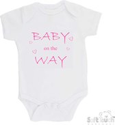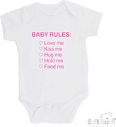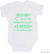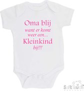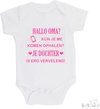 Barboteuse au toucher doux "Bonjour grand-mère peux-tu venir me chercher, ta fille est agaçante" Filles Katoen Wit/rose Taille 56/62