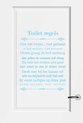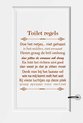 Chaque maison a certaines règles de la maison. La plupart de ces règles visent à garder la maison propre et bien rangée, y compris les toilettes. Souhaitez-vous mettre en valeur les règles de toilette de votre foyer de manière ludique et claire, dans l'espace qui compte? Commandez ensuite l'autocollant de porte «règles de toilette» et collez cet autocollant sur la porte de vos toilettes. Toute personne qui utilise vos toilettes peut lire le texte amusant pendant qu'elle est aux toilettes. Ce n'est pas seulement amusant, mais également utile si vous voulez que vos toilettes soient rangées à tout moment. Avec les règles de toilette claires sur la porte de vos toilettes, personne ne laissera les toilettes sales.