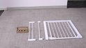 VEUILLEZ NOTER : À la réception, la barrière d'escalier peut sembler tordue, avec un espace entre la serrure et le cadre. Ceci est normal pour la conception « power frame ». Une fois le portail solidement fixé au mur, l’espace disparaît et il s’adapte parfaitement. Le portail n'est donc pas défectueux.