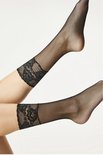 Fabriqué à partir de fils de fabricants renommés avec le certificat international Oeko-Tex. Belle bande de kanten avec des bandes adhésives en silicone qui maintiennent bien le collant sur votre jambe. Disponible dans les couleurs : noir, naturel, rouge et blanc.