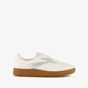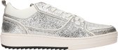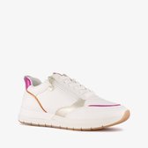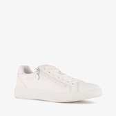 Baskets Witte avec détails argentés pour femme de Blue Box. L'extérieur est en similicuir, l'intérieur est en textile et la semelle extérieure robuste est en caoutchouc. La semelle intérieure en matière synthétique n'est pas amovible. Ces baskets basses pour femmes ont une semelle plateforme marron avec profil.